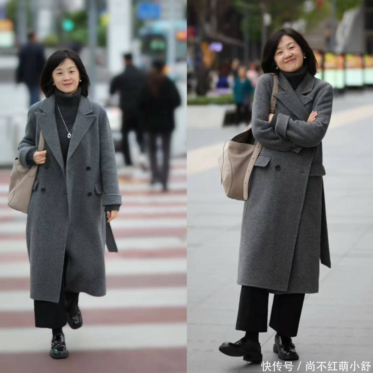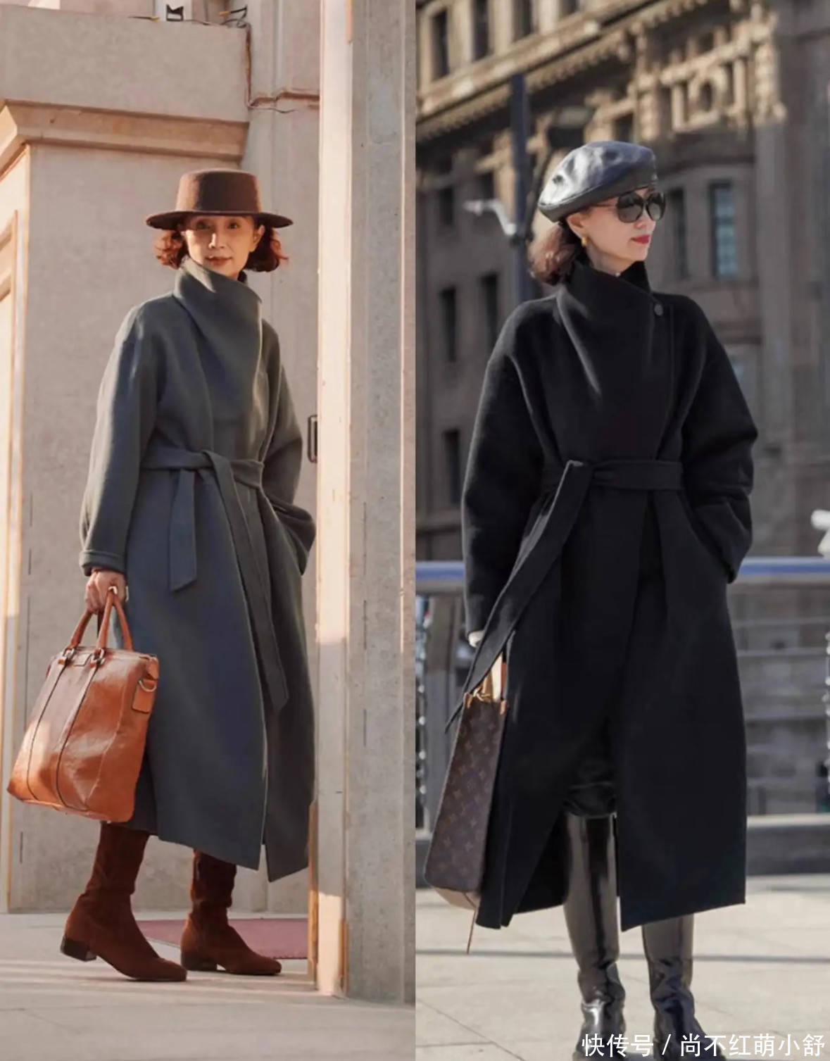 、高等感示范:一件剪裁利落的玄色H型长风衣 + 蓝色连衣裙+高跟色。大衣优秀的廓形能重塑你的体格线条,显得东谈主修长挺拔。内在的极简搭配保证了领会感。这身看似苟简,却因出色的版型和质感,平安取得上风。